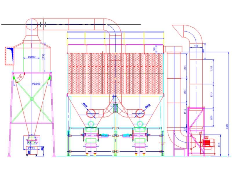 Hình ảnh sơ đồ hệ thống hút bụi kết hợp giữa cyclone và túi vải