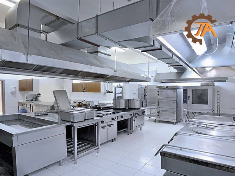 Nhà bếp thương mại là nơi có tần suất nấu nướng cao, khói và mùi thực phẩm bốc lên liên tục. Lắp đặt hệ thống hút mùi khói nhà bếp thương mại giúp đảm bảo không khí trong lành và giảm thiểu ô nhiễm trong nhà bếp. Hệ thống này thường lắp đặt trên bếp nấu, nơi khói bốc lên nhiều nhất.