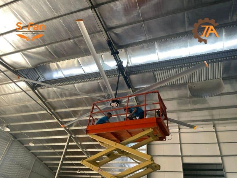 Là một mẫu quạt trần nhà xưởng tiêu chuẩn, việc lắp đặt và bảo dưỡng tương đối đơn giản, phù hợp với nhu cầu vận hành 24/7 trong nhiều ngành.